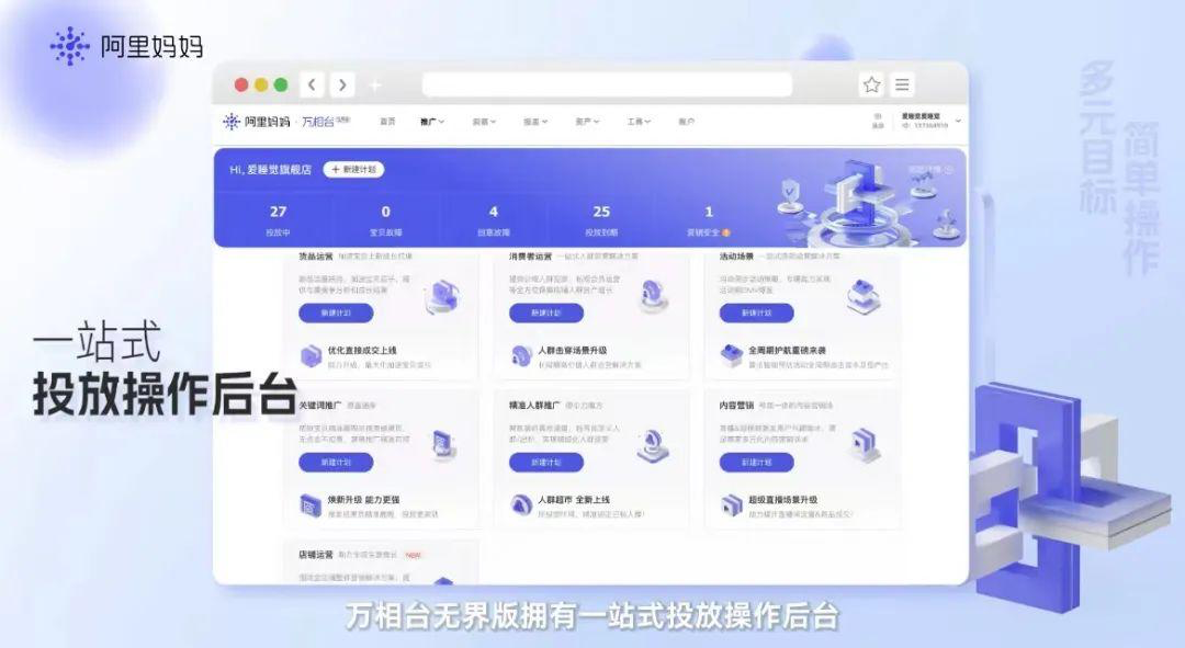 阿里妈妈打造的“万相台无界版”系统,整合了淘宝天猫的全渠道资源,利用AI算法和大模型能力,为商家提供一站式智能广告投放,实现了精准触达、货品上新加速和内容爆发,简化了电商操作。[3]