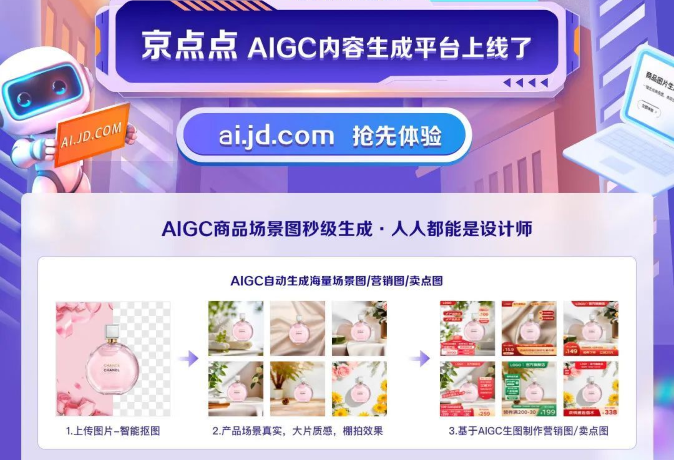 京东的京点点AIGC在营销内容制作方面,通过AI技术快速生成高质量商品图和专业文案,极大提升了内容生产效率,降低成本,使得非专业背景的商家也能迅速完成百张商品图和百篇文案的生成,大幅提升内容生产效率。AI自动化制作不仅免去了摄影和设计费用,相比传统方式成本降低超过95%。[4]
