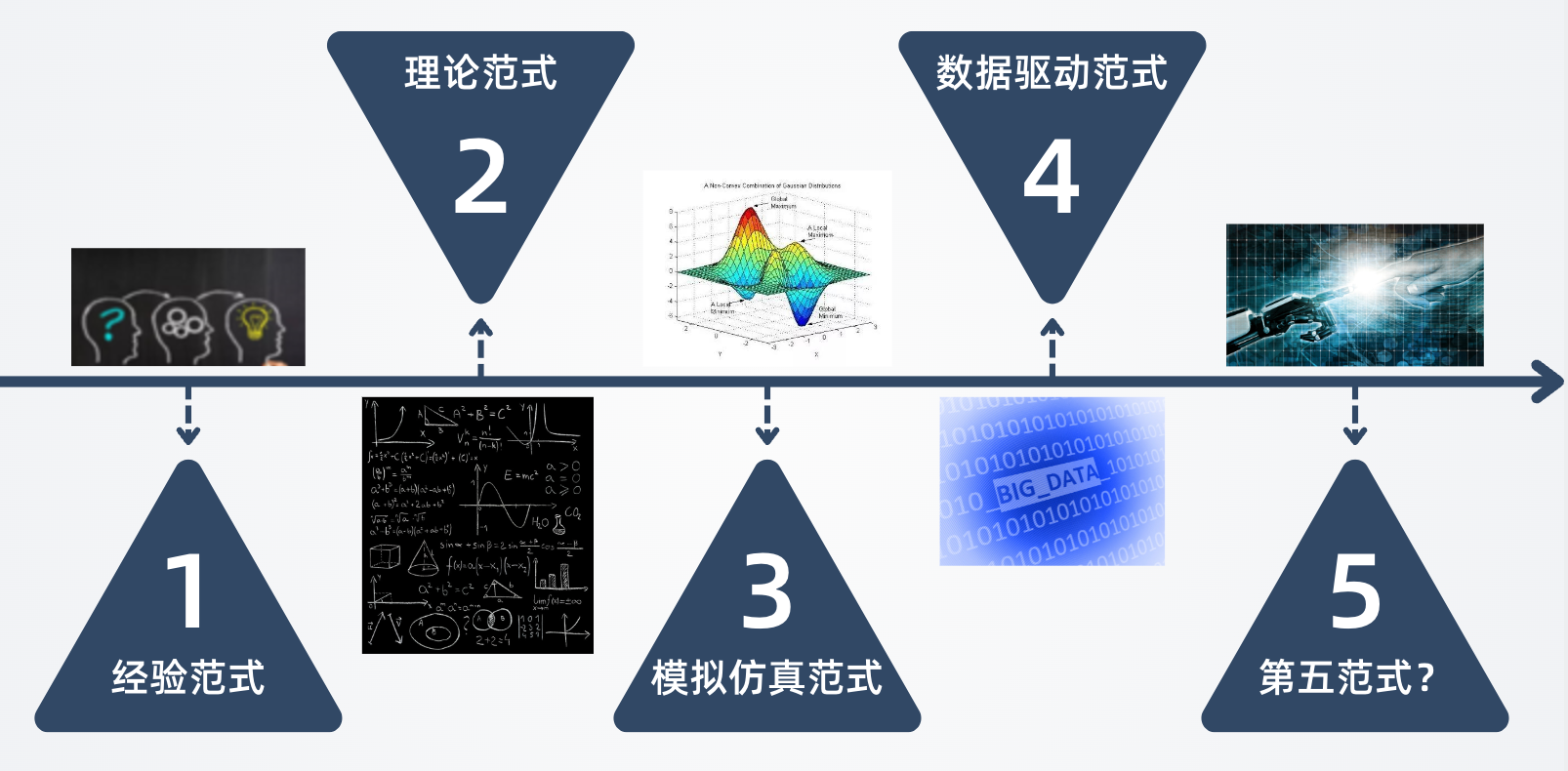 千百年来,人类的科研范式经历了四次重大的演变,分别是经验范式、理论范式、模拟仿真范式和数据驱动范式。